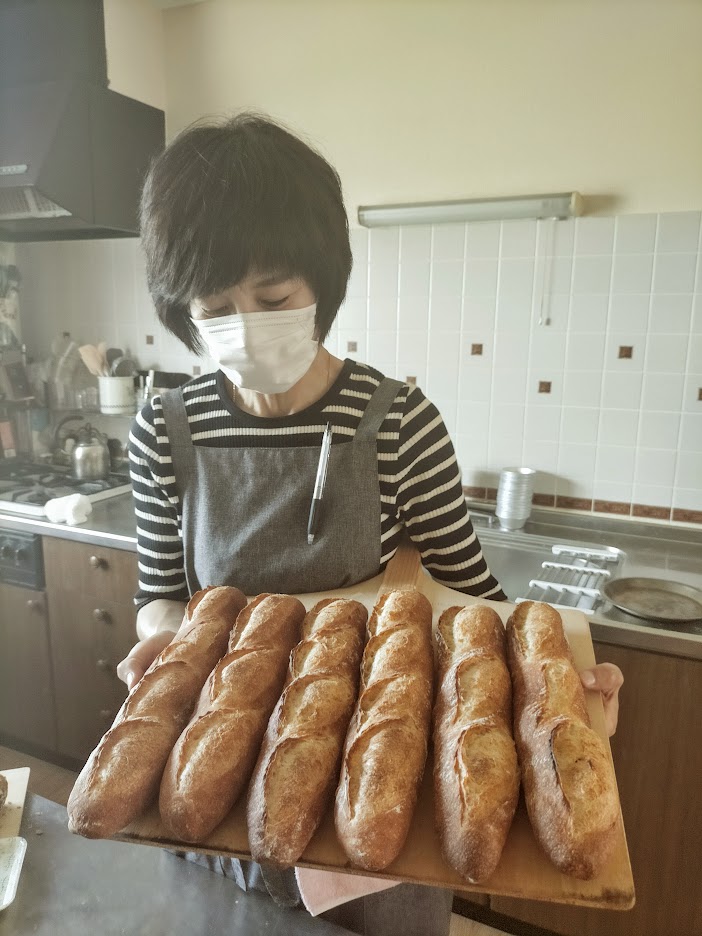 市販のいろんな添加物が入ってフワフワさせているものと違って フワフワしながらもしっかり噛みごたえもある 味わい深いパンができて 感激!次回は ランチでいただいたバゲット作りにも チャレンジしてみたいと思います。(しょこたんさん)
