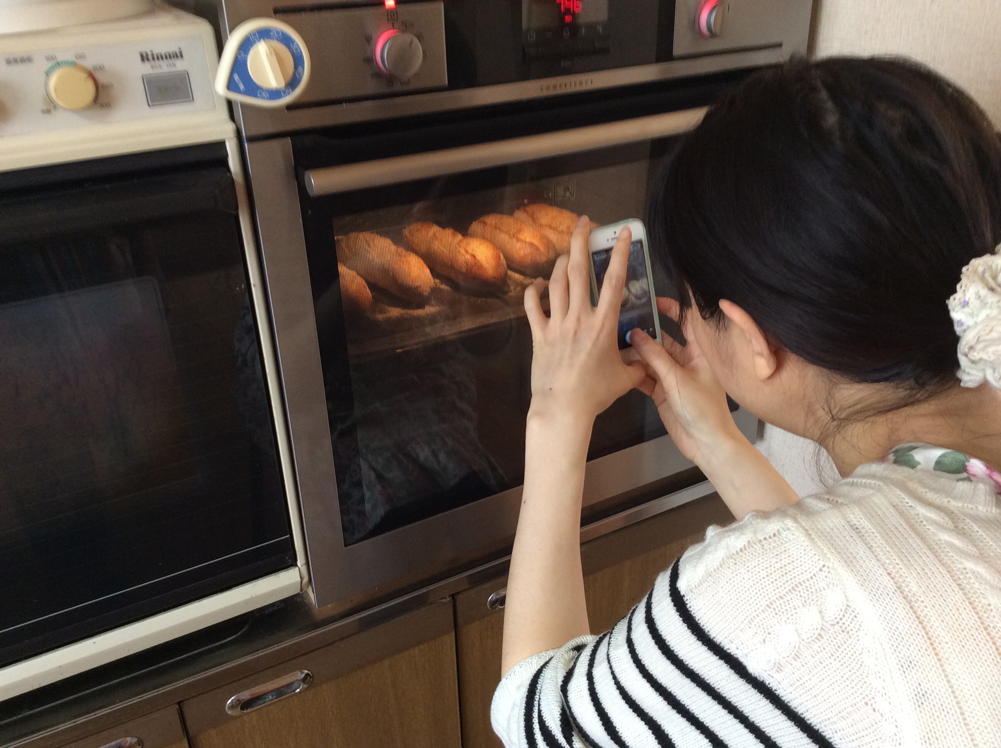 オーブンの中を覗いて完成を挙げられ写真を撮る光景は定番に