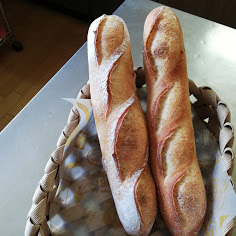 今朝焼いたバゲットを頂いた籠に^^