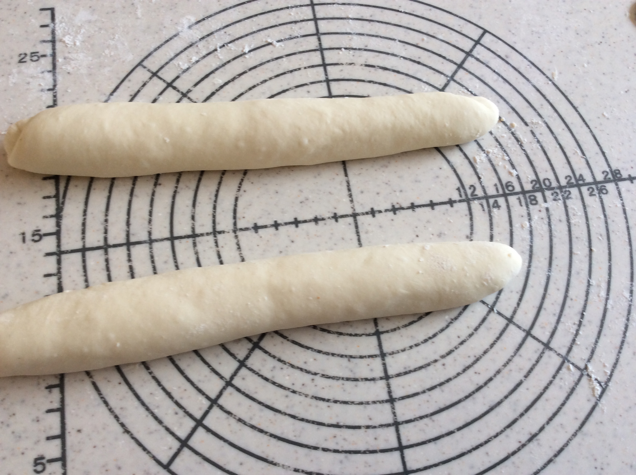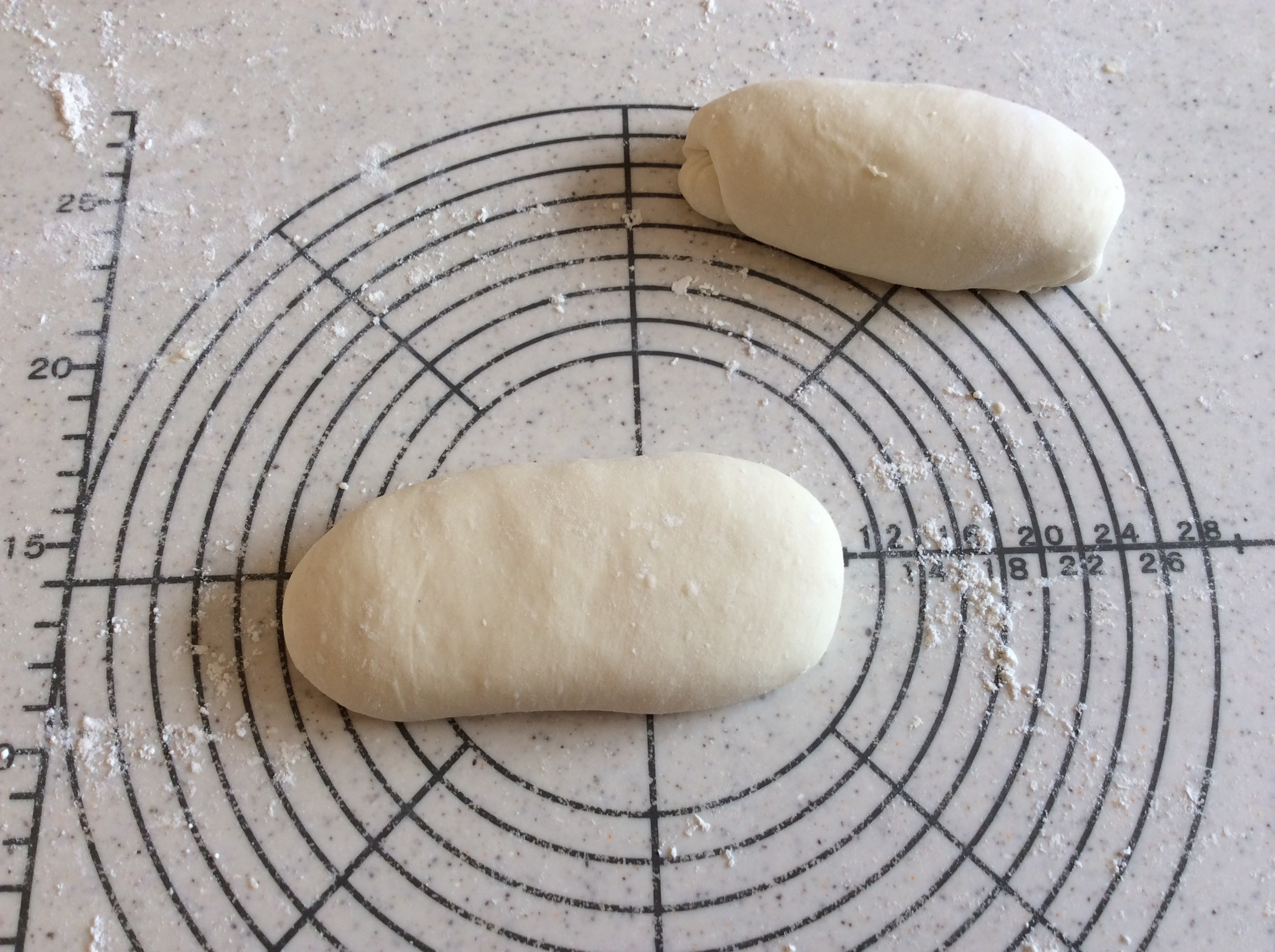 これはフランスパンの成型でもあるのでラインを真っ直ぐに・張りをしっかりと。