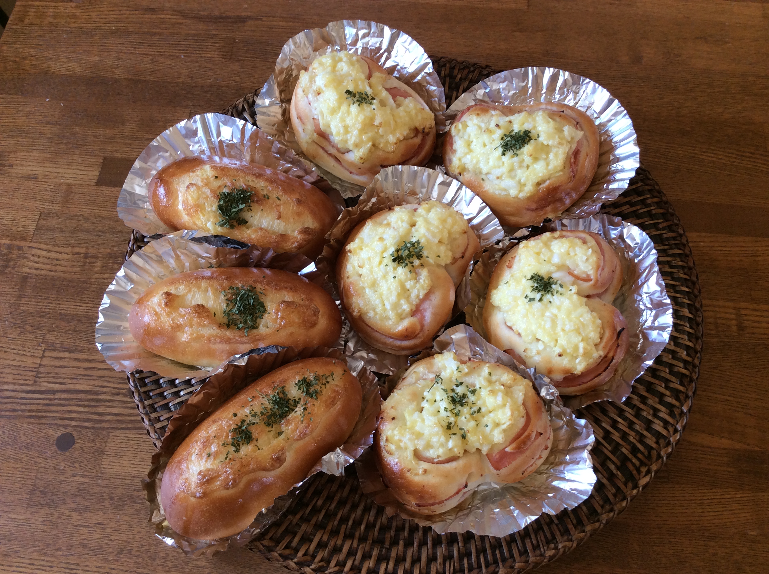 ハムロールはきつく巻くこと、マヨネーズパンは棒状に成型しますが